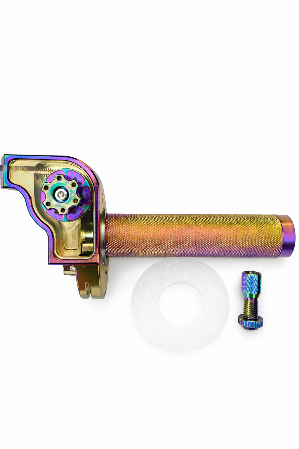 Acelerador de cuarta acerbis con acabado anodizado multicolor, fabricado en aluminio CNC de alta resistencia. Ofrece respuesta suave y precisa, mayor durabilidad y un diseño deportivo que realza el estilo de tu motocicleta. Ideal para uso urbano y deportivo.